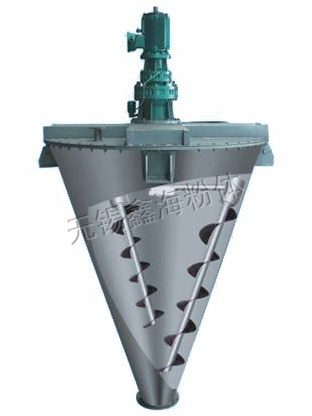 單錐雙螺旋混合機是一種新型高效、高精度的混合設備。該機采用一套電機及擺線針輪減速機組成公轉和自轉,利用長短攪拌螺桿回轉運動和兩螺桿自轉運動相結合的原理,使比重配比懸殊的物料達到合適的混合度,混合時間短,效果好。