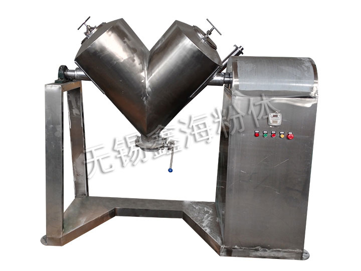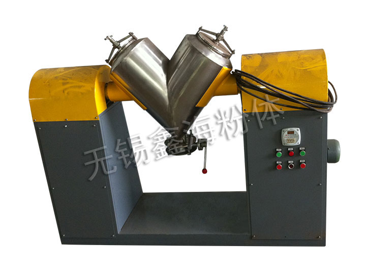 接下來就是機器工作的時間,接通電源按鈕,將停止按鈕向左旋轉,啟動混合機的反轉按鈕,調節電機轉速在工藝規定的轉速內產品要600r/min進行混料。在混料到達工藝規定的時間后,通過調節電機轉速按鈕進行停機,停機時應使混合機放料口正對地面,并將調節電機轉速按鈕調到0位,V型混合機將停止按鈕向右旋轉,切斷電源。放料:打開V型混合機投料口,用規定的容器在放料口進行裝料,直至放盡料斗內物料。